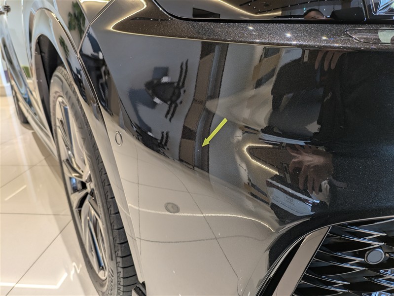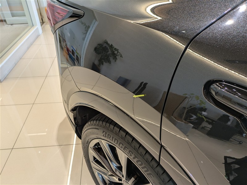 ボンネットのタッチペン跡