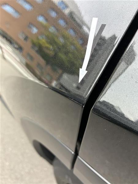 右リアフェンダーアーチモール線キズ