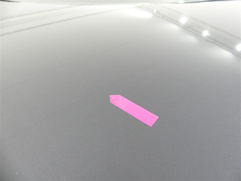 透かして見ないとわからない程度の薄いヘコミ